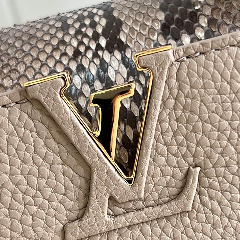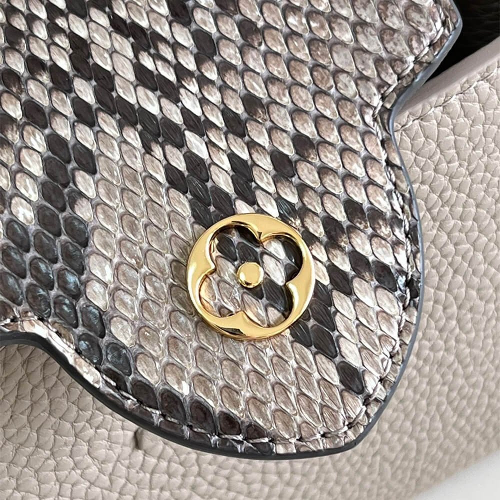 Taurillon-and-python leather trim
