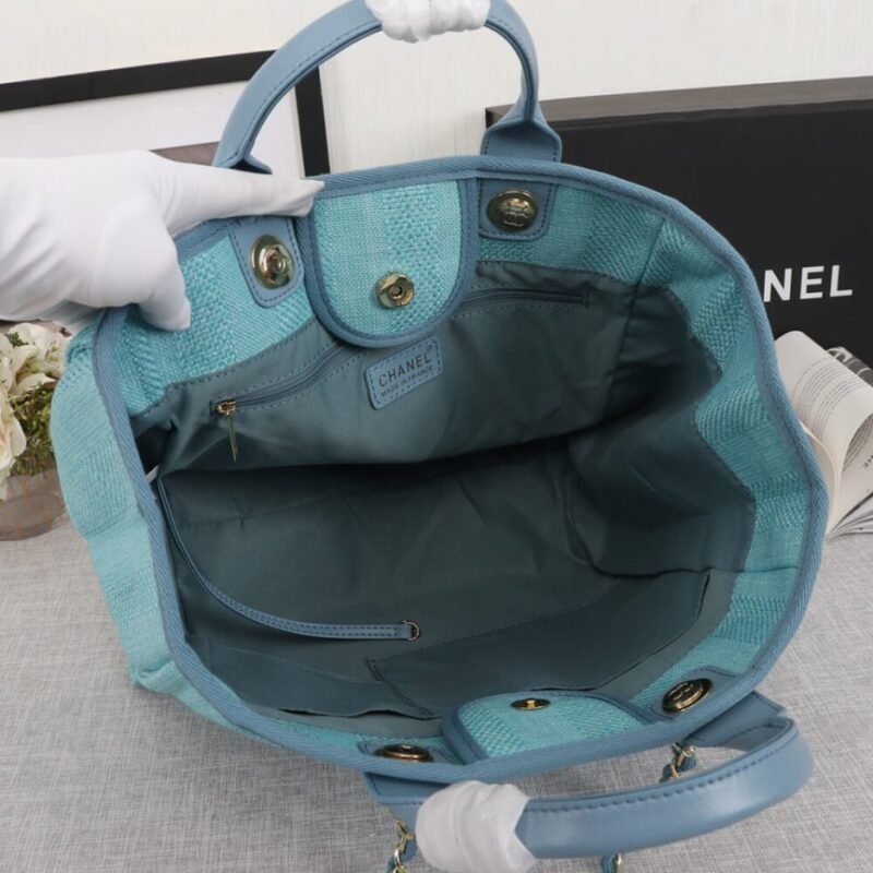 CHANEL Woven Straw Raffia Striped Medium Deauville Tote
