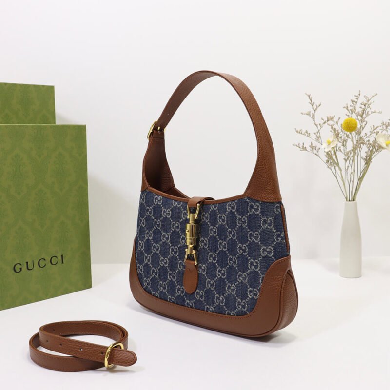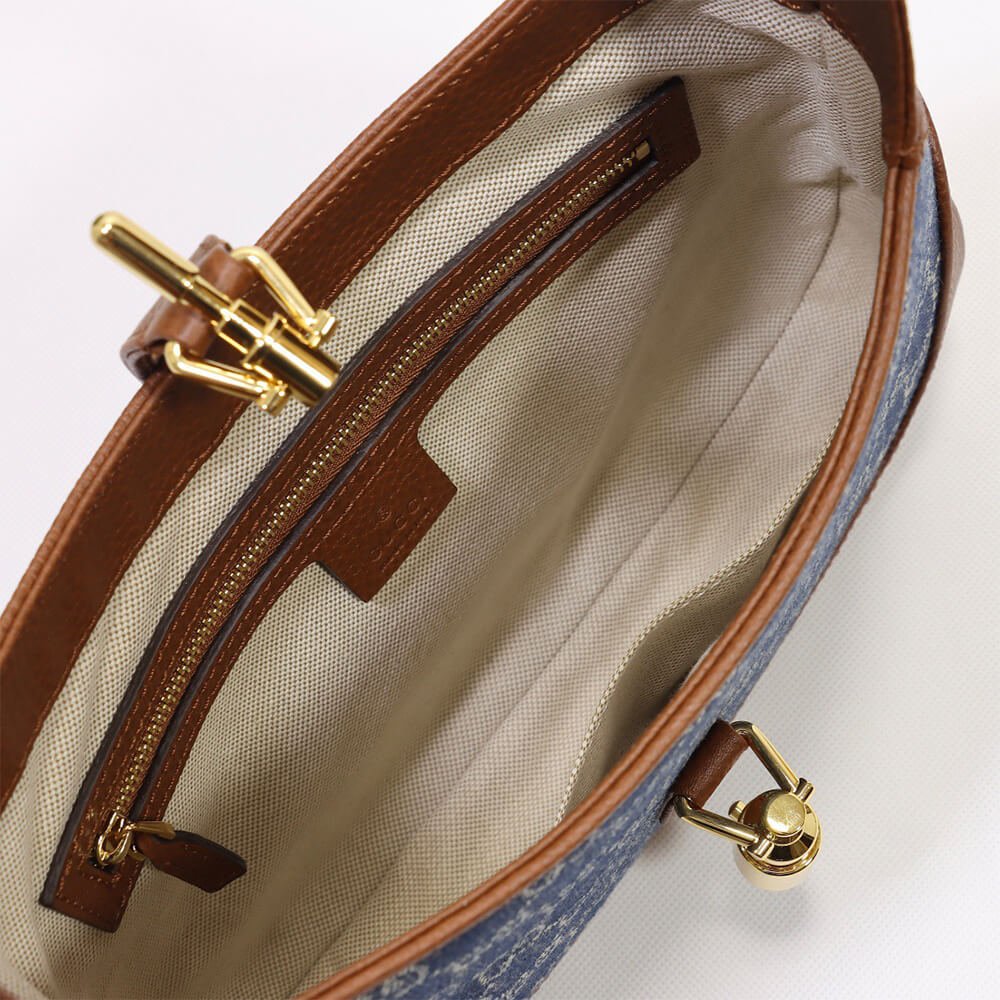 Dark blue and ivory eco washed organic GG jacquard denim