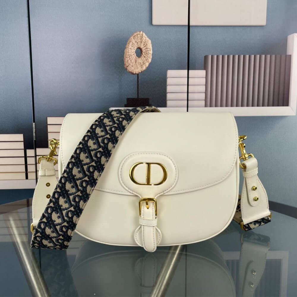 Removable and adjustable shoulder strap with blue Dior Oblique embroidery