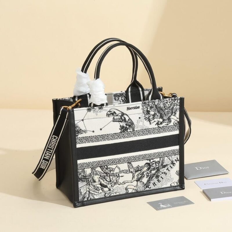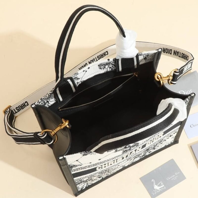 Latte Multicolor Dior Zodiac Embroidery and Black Calfskin