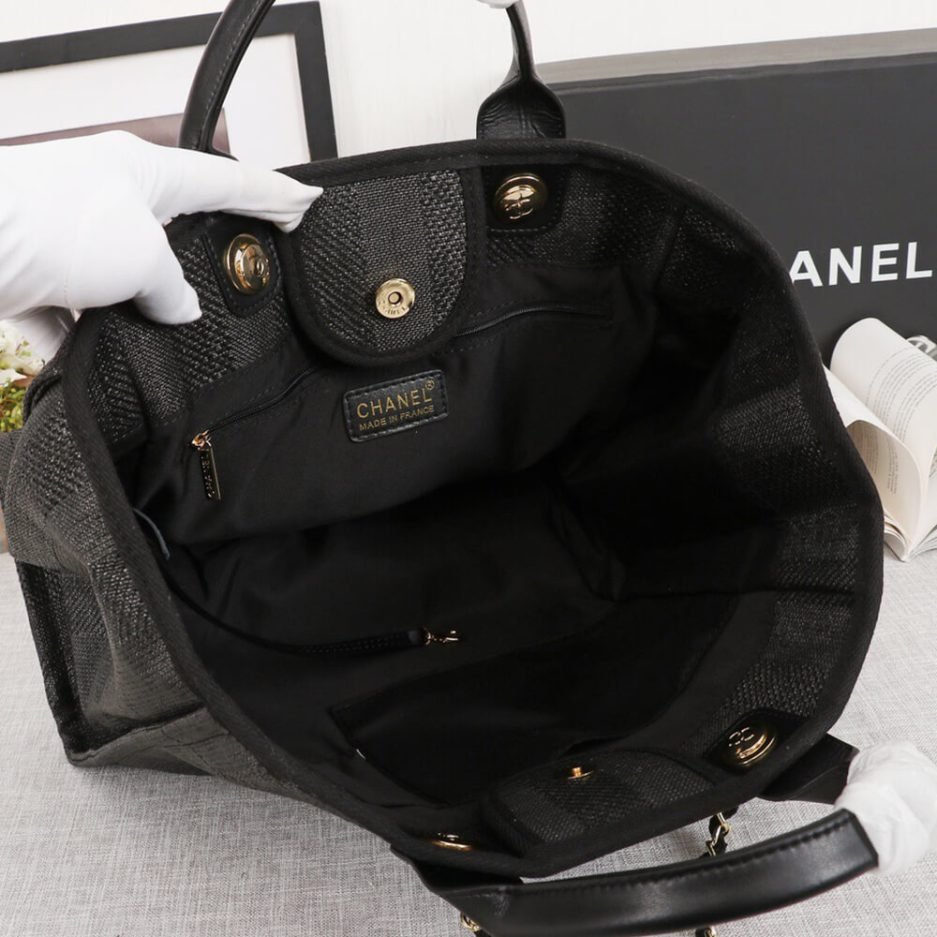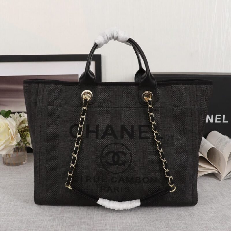 CHANEL Woven Straw Raffia Striped Medium Deauville Tote