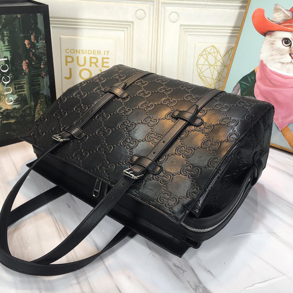 Black GG embossed leather