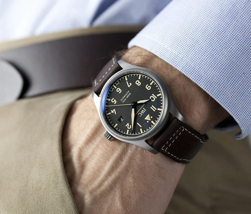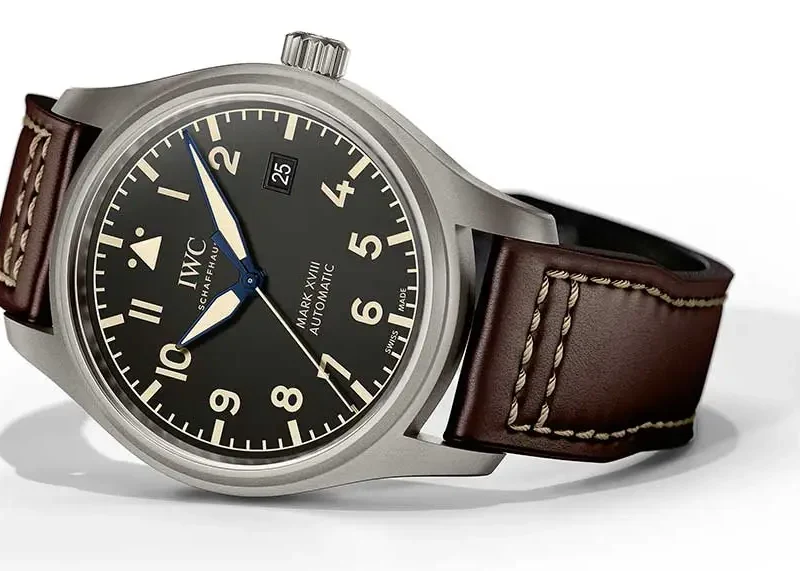 Titanium case,?Automatic, self-winding,?Diameter 40.0?mm,?Black dial with luminescence,?Brown calfskin strap,?Strap width 20.0 mm.