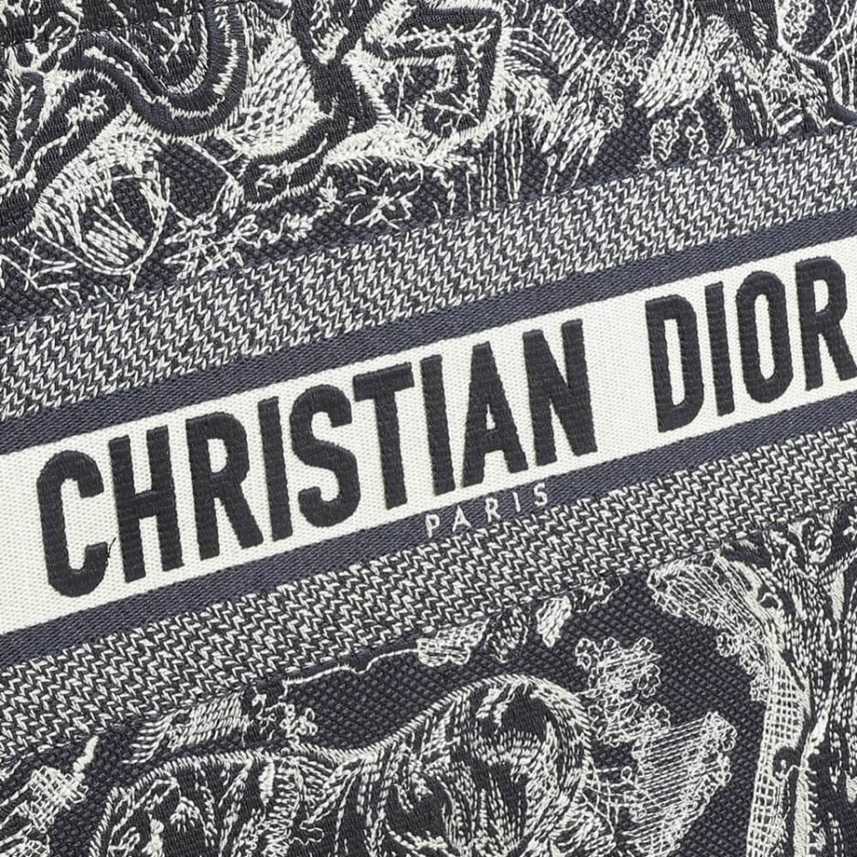 Blue and Ecru Toile de Jouy Reverse Embroidery and Blue Calfskin