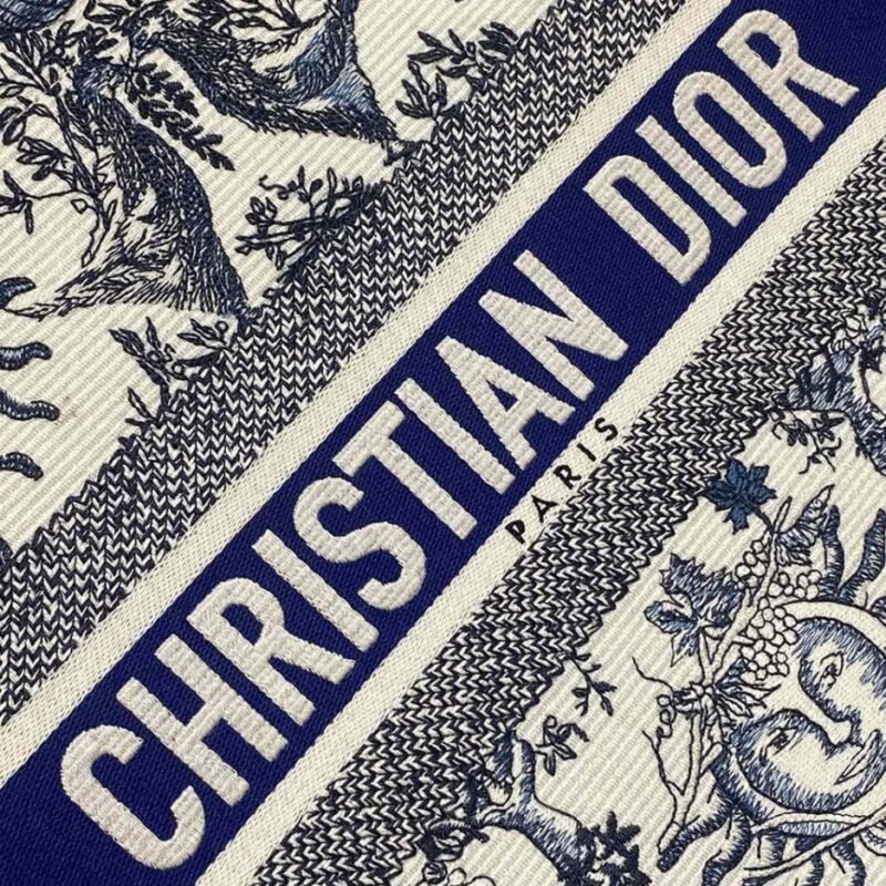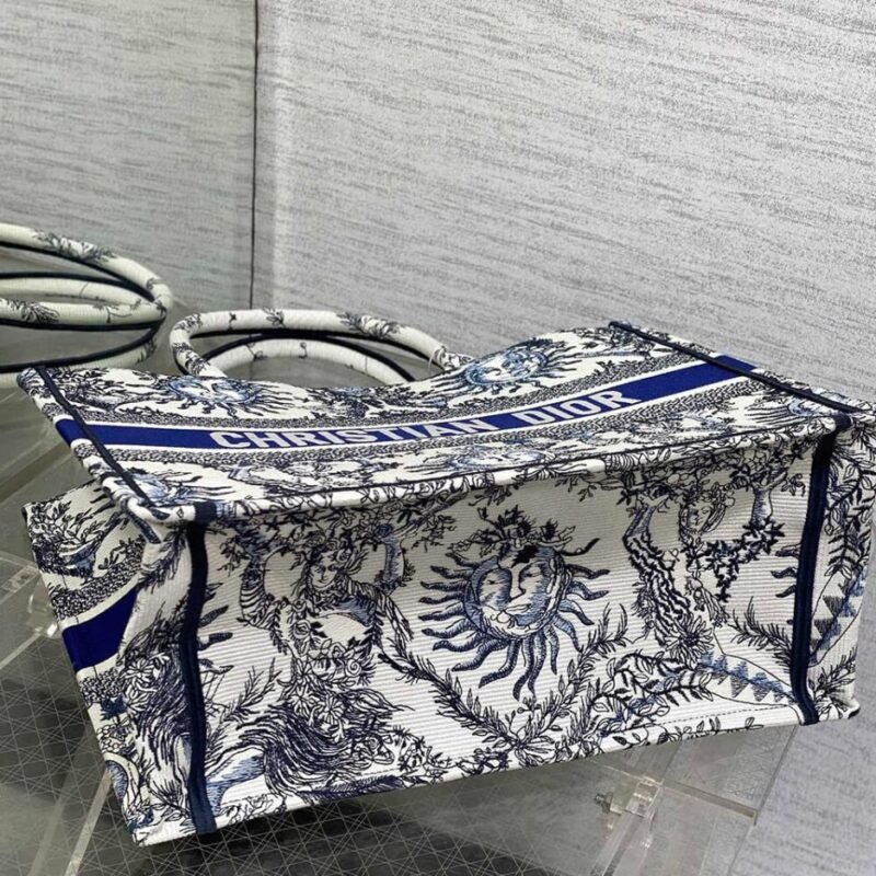 White and Navy Blue Toile de Jouy Soleil Embroidery (36 x 27.5 x 16.5 cm)