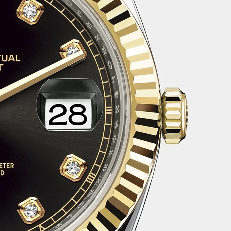 - Scratch-resistant sapphire, Cyclops lens over the date