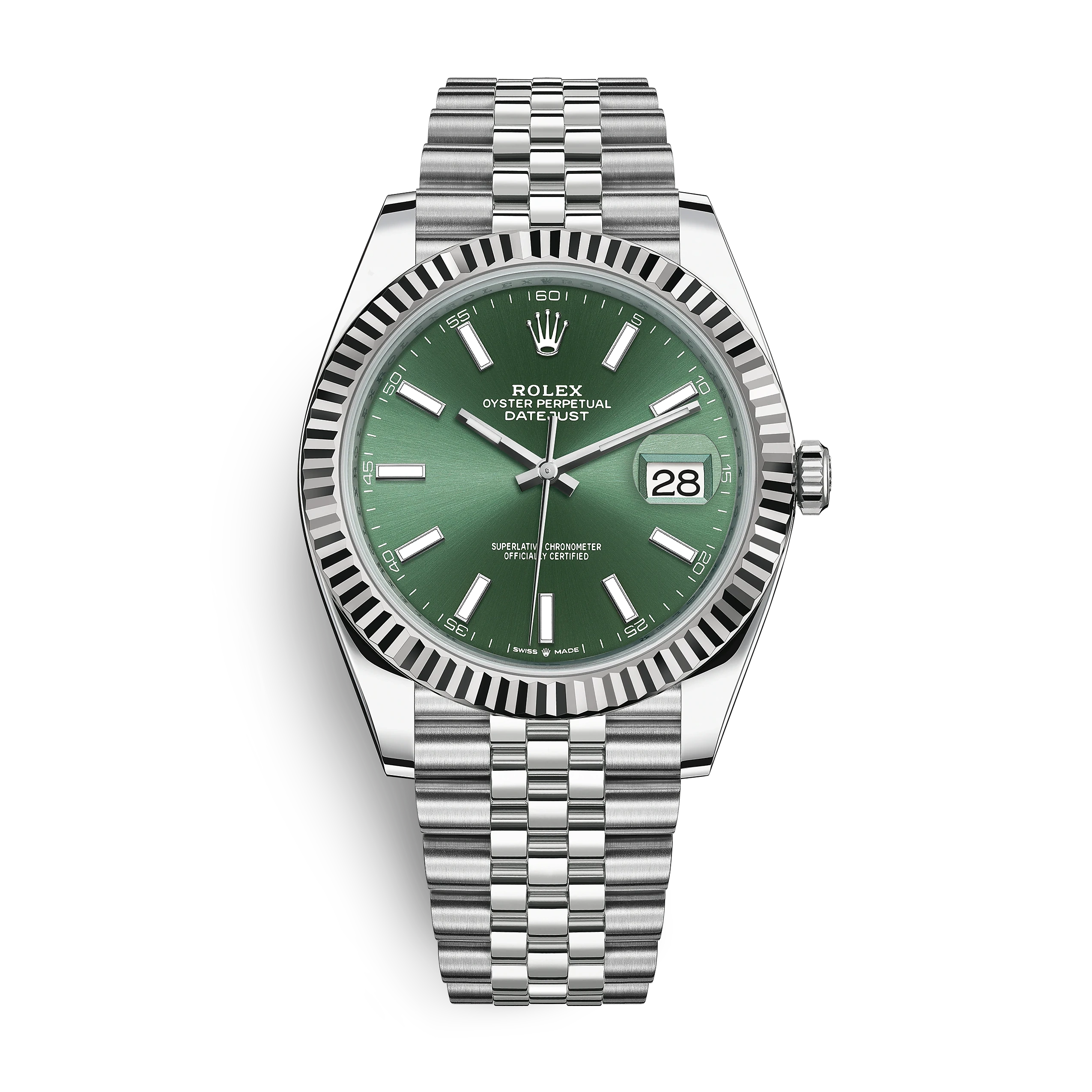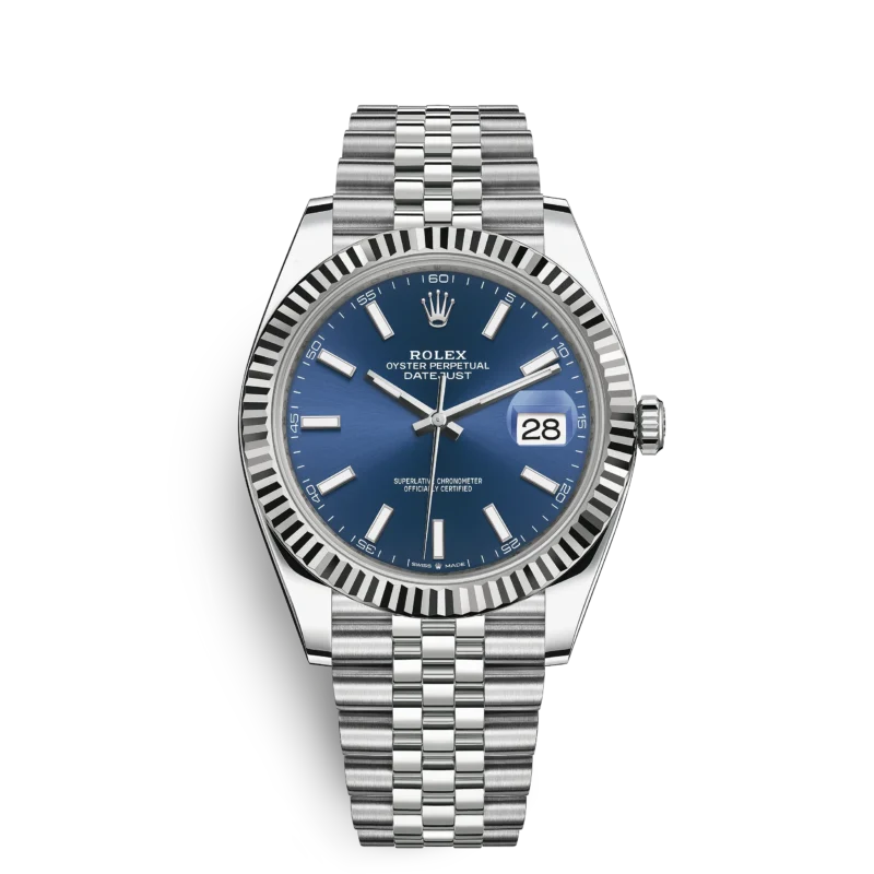 The light reflections on the case sides and lugs highlight the elegant profile of the 41 mm Oyster case, which is fitted with a fluted bezel. Aesthetically, the Datejust has spanned eras, while retaining the enduring codes that make it, notably in its traditional versions, one of the most recognized and recognizable of watches.