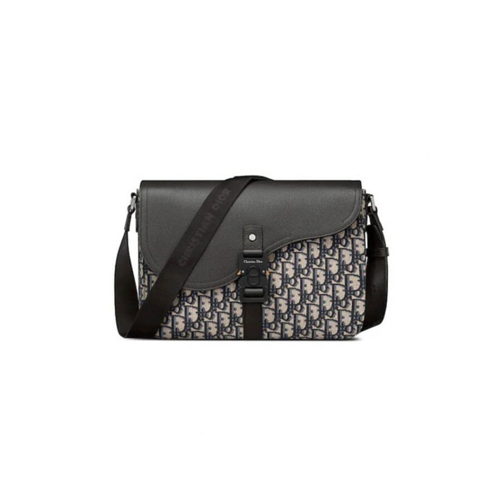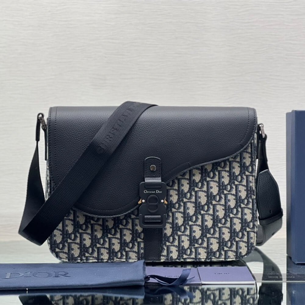 Aluminum buckle with Christian Dior signature and CD initials on flap closure